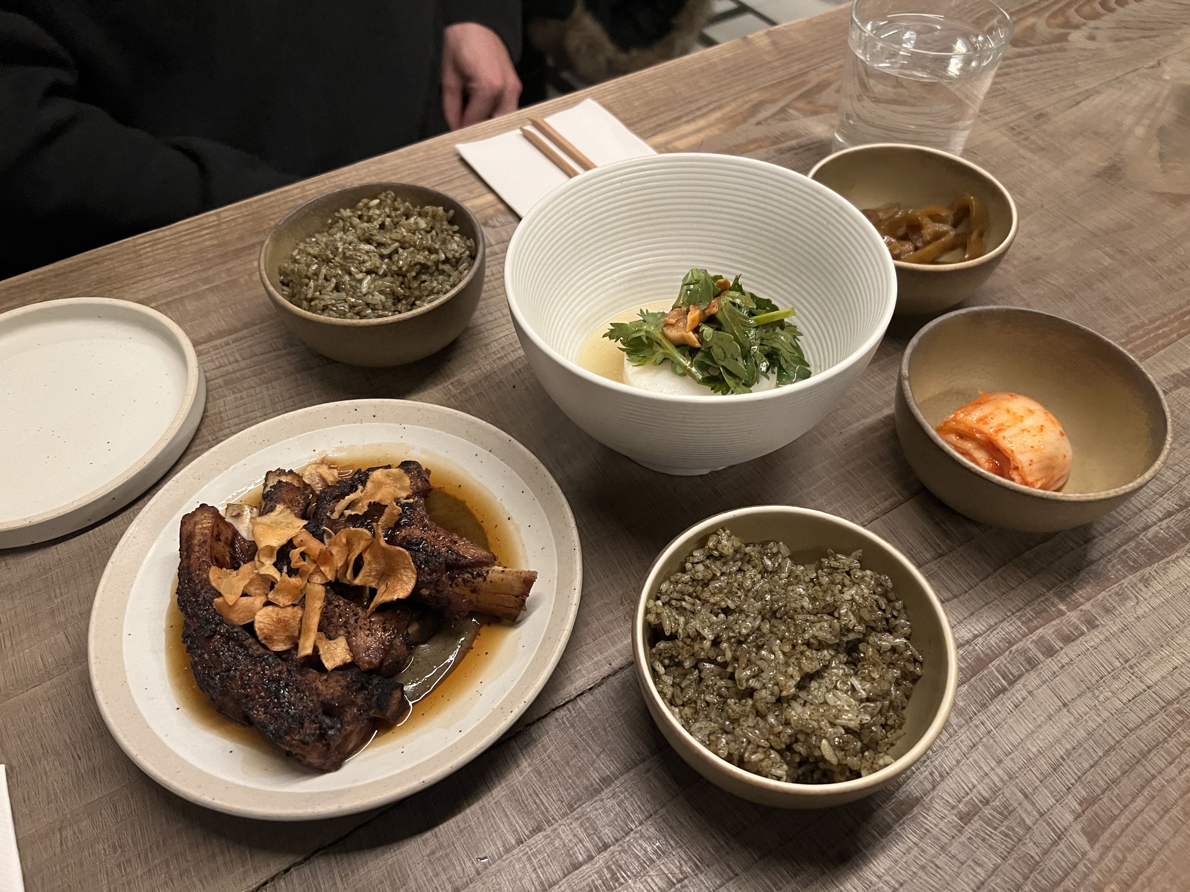 We got the pork galbi and the cod, and it also came with gim rice and kimchi. The pork galbi was tender, fall-off-the bone delicious, with a smoky flavor that filled your mouth with each bite. The gim rice was unironically an experience in itself - the seaweed made it seem like you were tasting the ocean.